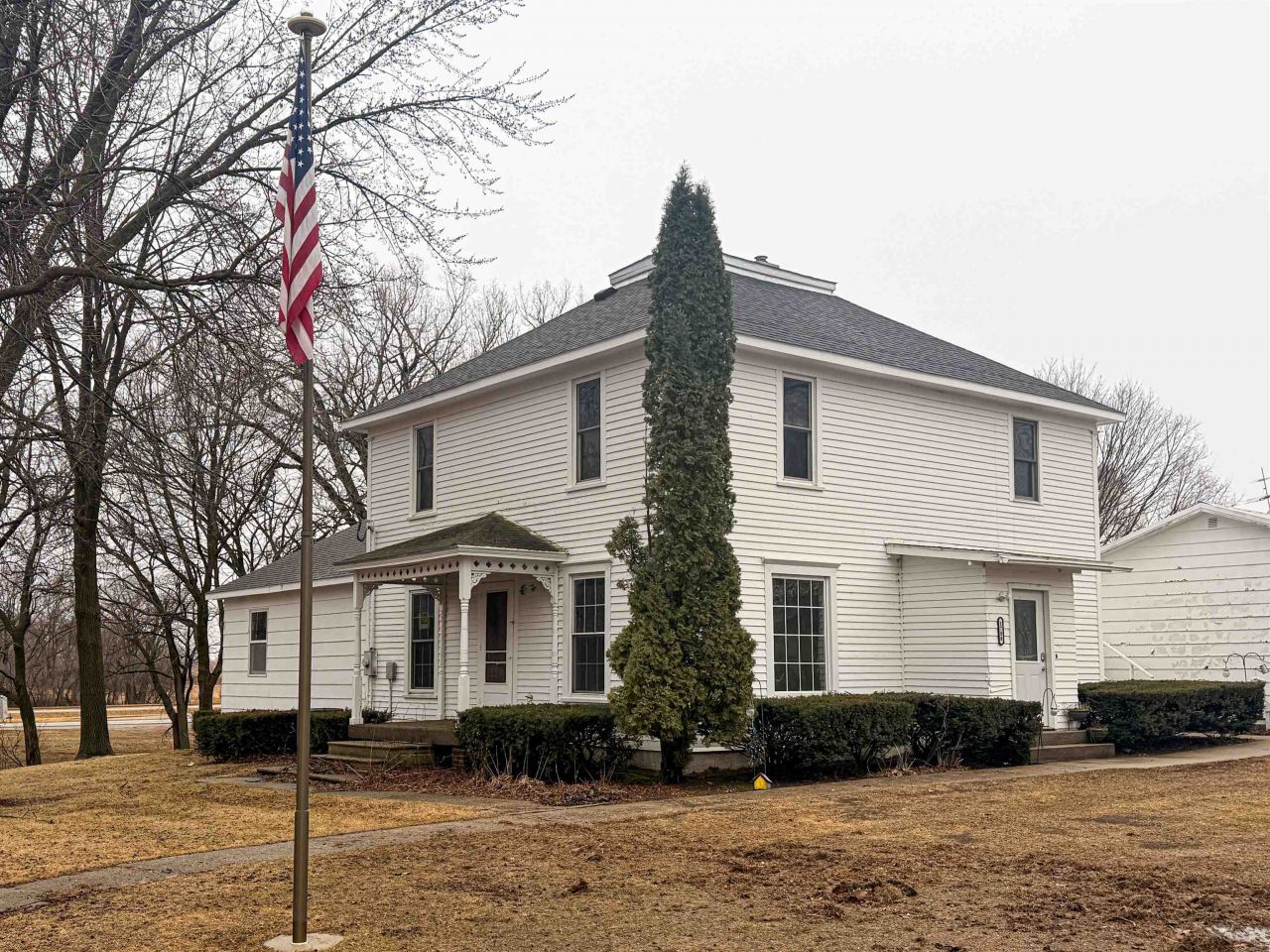 Looking for space? This farmhouse-style home offers room for everyone both inside and out. The main floor features a bright living room, spacious kitchen with plenty of cabinets, dining area, 2 bedrooms, full bathroom, and convenient main floor laundry. A second living room provides great additional space for relaxing or entertaining. Upstairs includes three large bedrooms and a full bathroom with laundry. Outside you???ll enjoy a screened porch, deck overlooking the yard, and mature trees surrounding the property. The large 4-stall detached garage offers excellent storage, workshop space, or room for all the toys. Unfinished basement provides additional storage and potential. A great opportunity for someone looking for space, character, and a large garage.