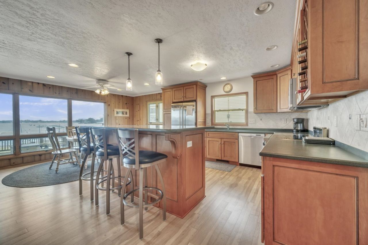 Experience the pinnacle of lakefront living at 2714 Breezy Heights. This 4-bedroom, 3-bathroom retreat is where nostalgic charm meets modern reliability. Inside authentic pine finishes combine with oversized windows to create a timeless and panoramic view of the lake. Designed for maximum comfort and peace of mind, the home is equipped with dual systems: 2 AC units, 2 furnaces, and 2 water heaters, ensuring you stay comfortable year-round. Let's not forget to mention the massive, sprawling lakeside deck and bunk house, which flows directly out onto private sand beach frontage. Properties with this level of utility and prime beach access are a rare find on West Lake.